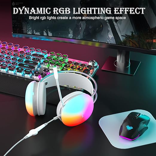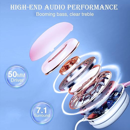 AULA S505 USB Wired Gaming Headset with Mic for PC | RGB Rainbow Backlit, Virtual 7.1 Surround Sound, 50mm Driver, Soft Memory Earmuffs | Wired Laptop Desktop Computer Headset (Pink)