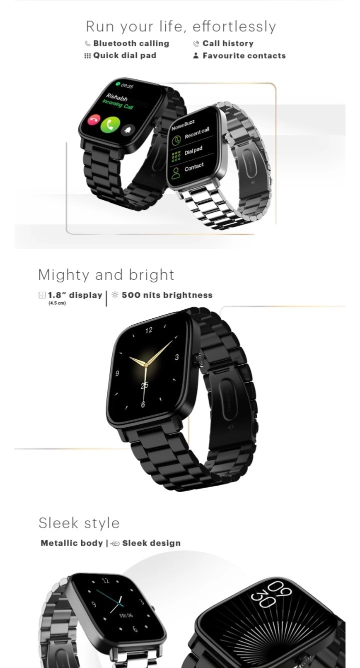 Noise New Macro Smart Watch with 2.0” HD Display,Metallic Finish BT Calling, Functional Crown, 7 Days Battery Life, Sleep Tracking, 200+ Watch Faces (Elite Black)