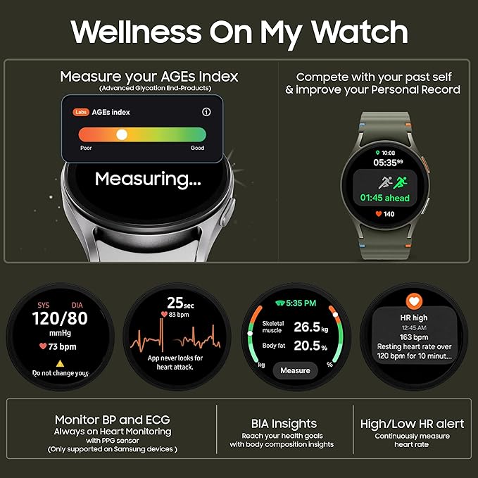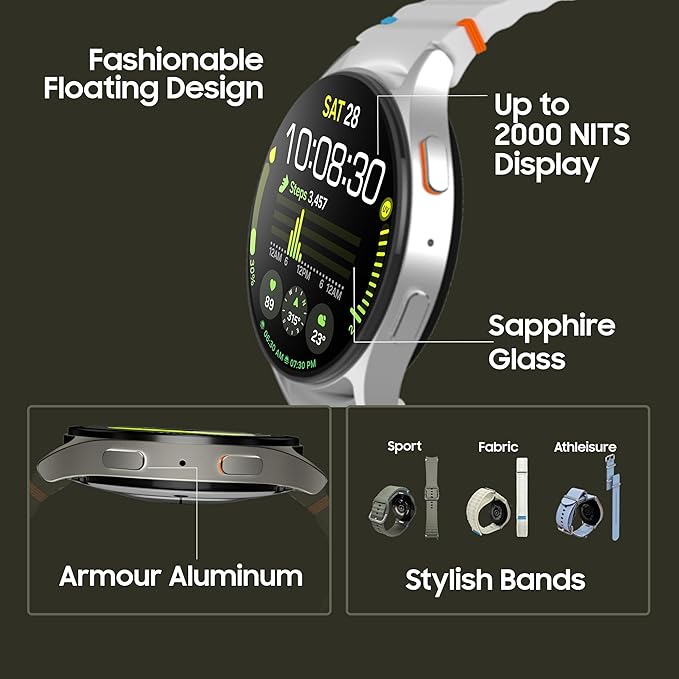 Samsung Galaxy Watch 7 (44mm, Green, BT) with 3nm Processor | Dual GPS | Sapphire Glass & Armour Aluminum | 5ATM & IP68 | HR, SpO2, BP & ECG Monitor
